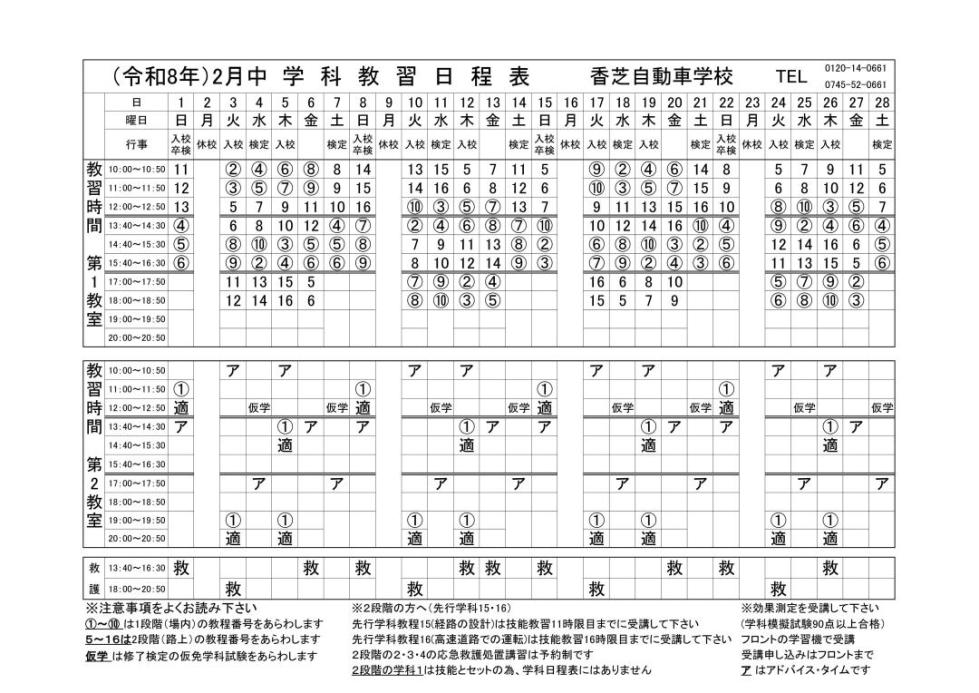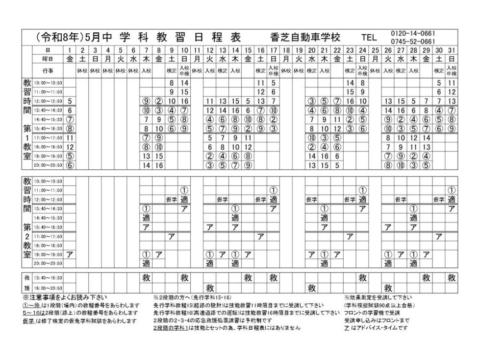 ・2段階の学科1は技能とセットの為、学科日程表にはありません。