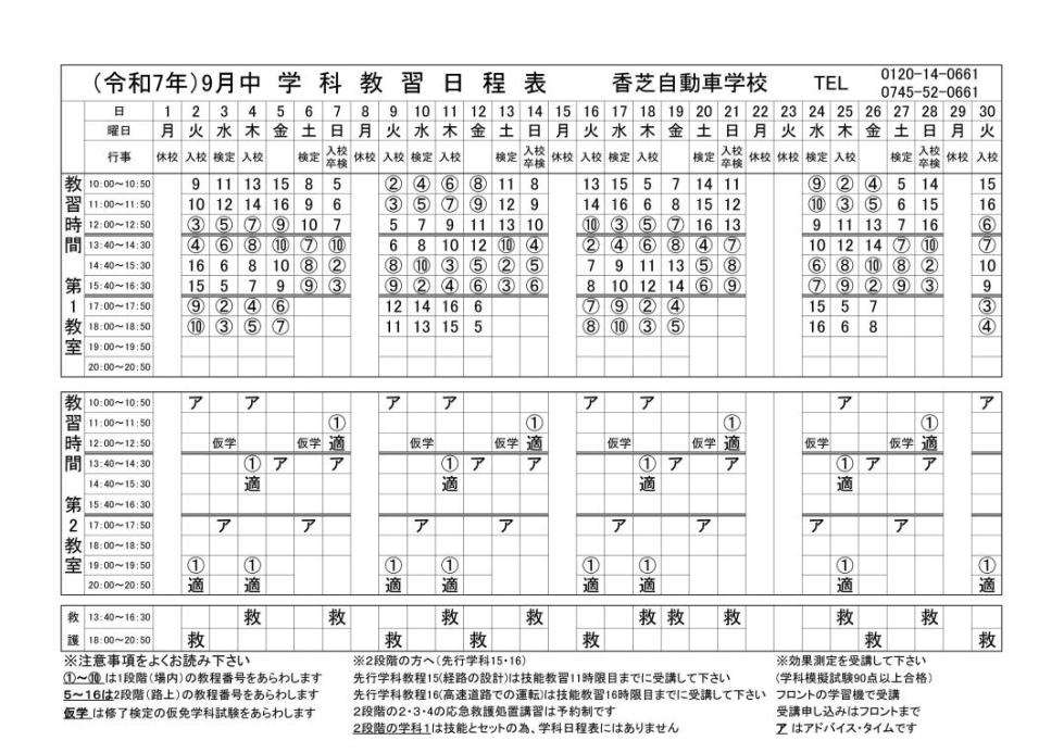 ・2段階の学科1は技能とセットの為、学科日程表にはありません。